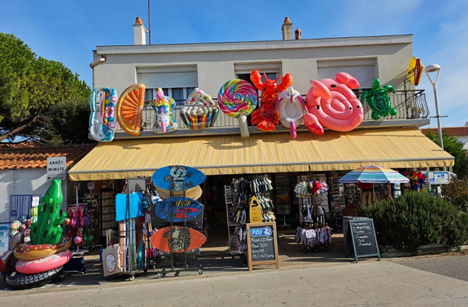 Au centre de la Guérinière, ouvert toute l'année, Tabac Vape CBD, Presse FDJ, Librairie, Carterie, Cadeaux, Vêtements souvenirs, articles de plage, produits artisanaux de l'île.